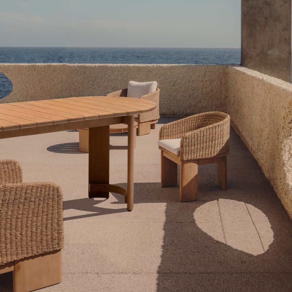 Стіл Xoriguer - це поєднання природної краси деревини, м'яких форм і універсальності, що робить його ідеальним вибором як для обідньої зони в будинку, так і для тераси або саду.
