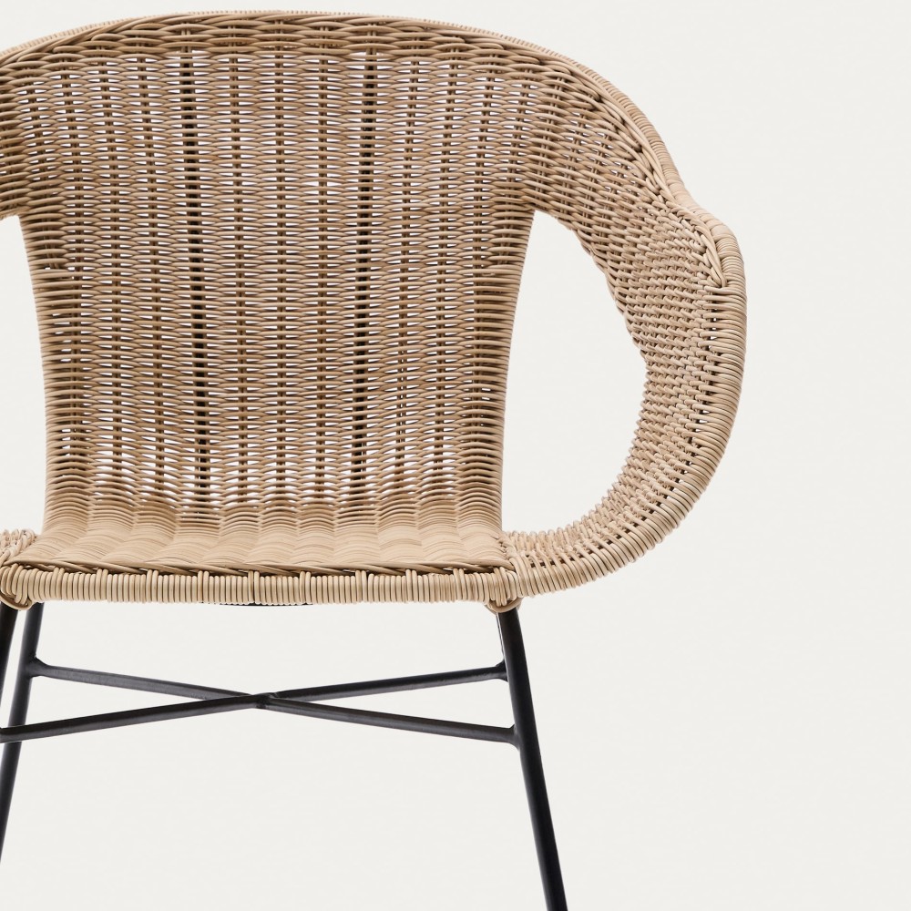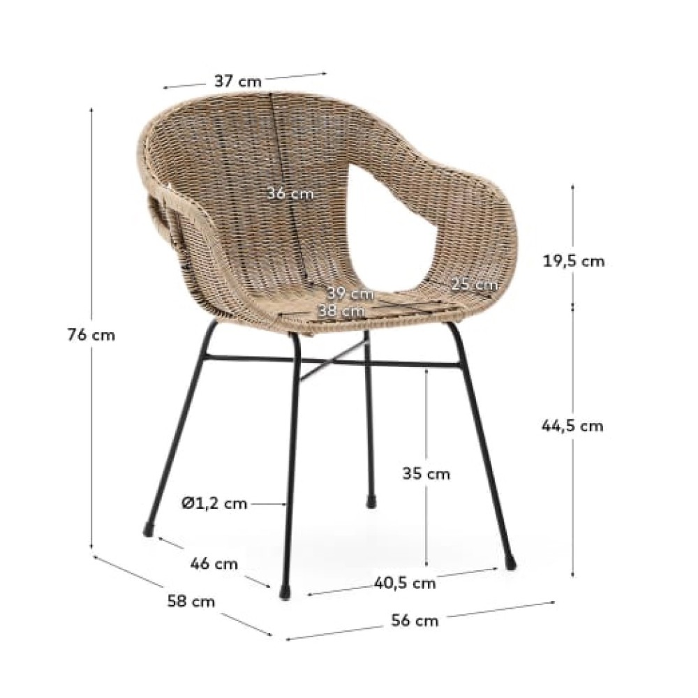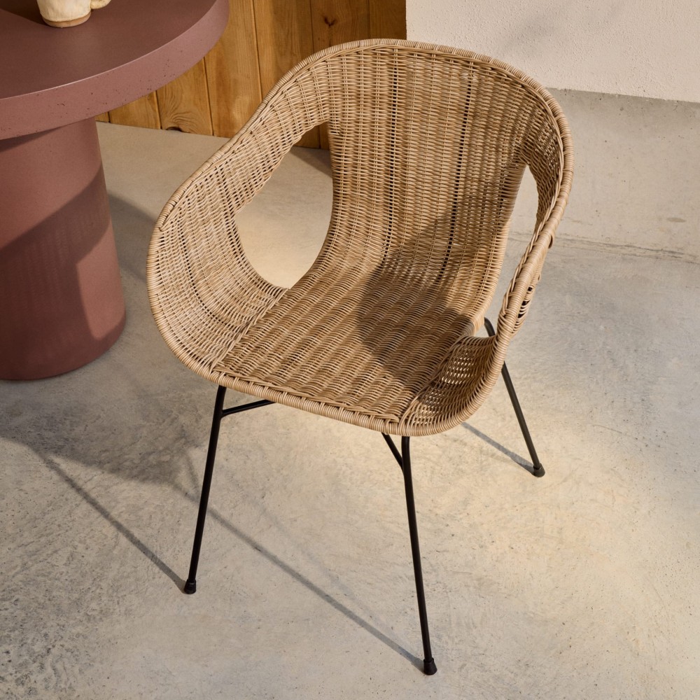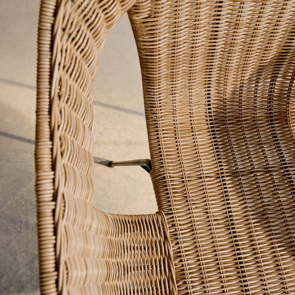 Стілець Eltiera поєднує в собі сільський шарм і сучасну міцність. Круглий, органічний силует і ручне плетіння із синтетичного ротанга надають інтер'єру або відкритому простору затишок і характер.