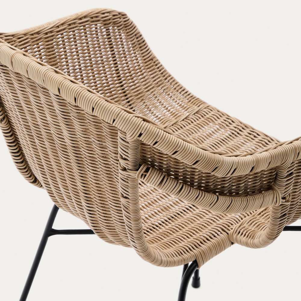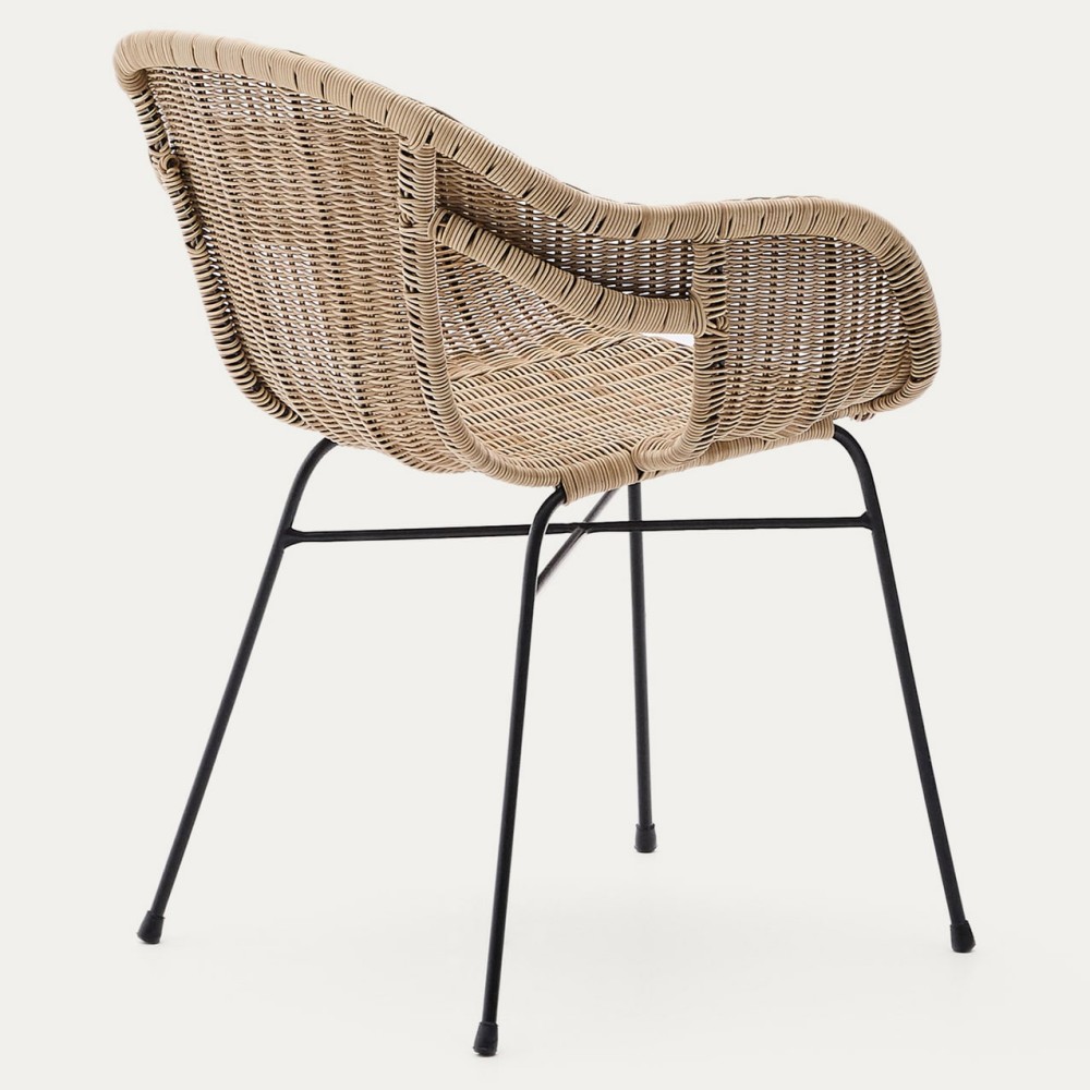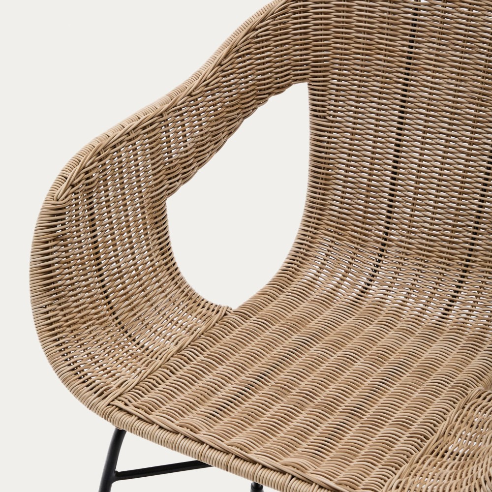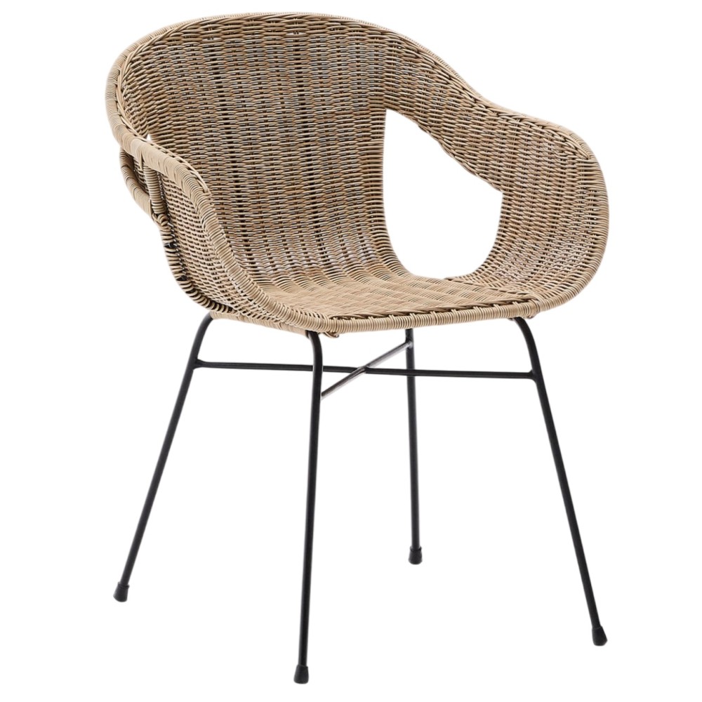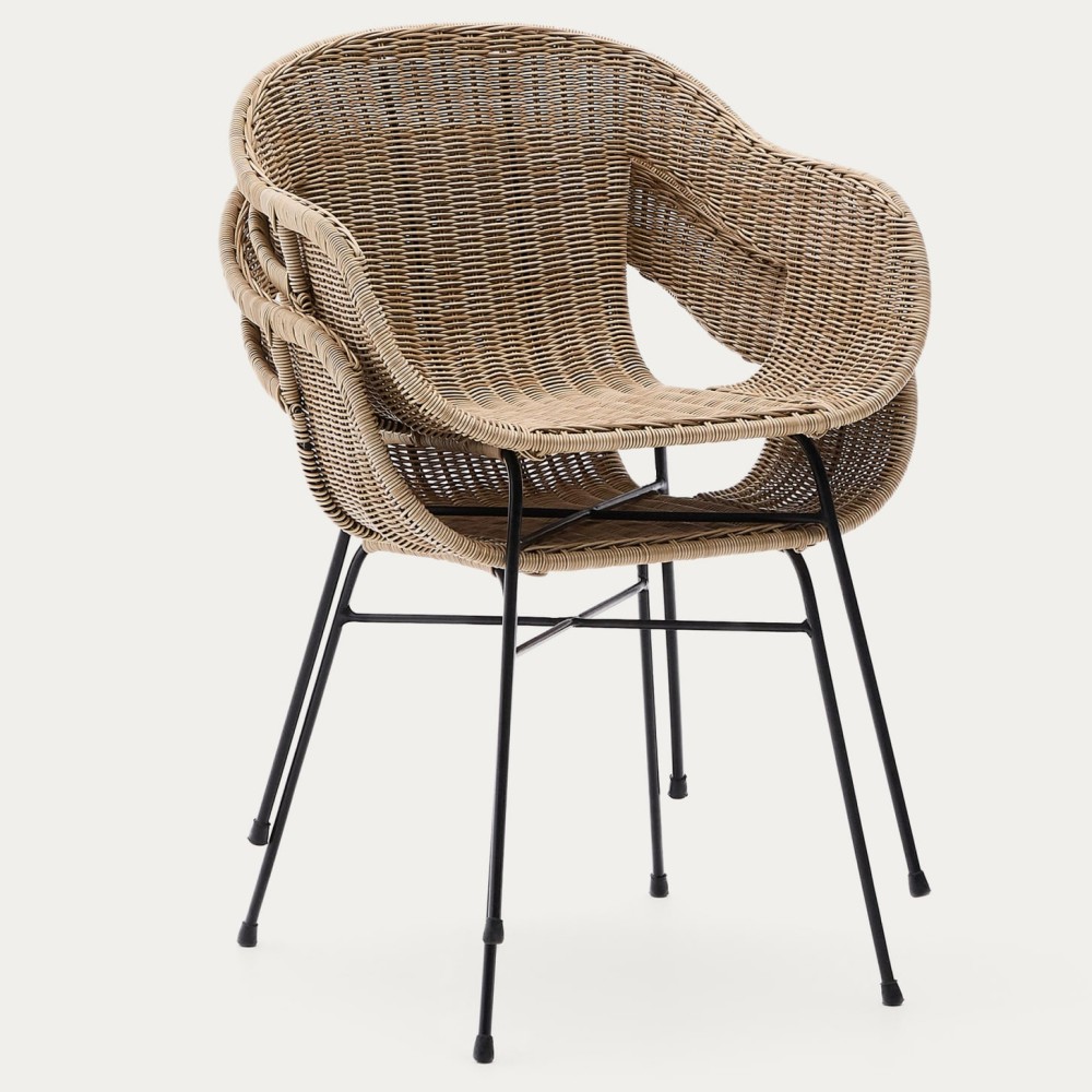 Стілець Eltiera поєднує в собі сільський шарм і сучасну міцність. Круглий, органічний силует і ручне плетіння із синтетичного ротанга надають інтер'єру або відкритому простору затишок і характер.
