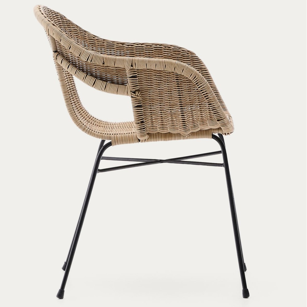 Каркас із високоякісної чорної сталі та міцне плетіння стійкі до ультрафіолетового випромінювання, не бояться вологи та легко очищаються. Завдяки цим якостям стілець Eltiera ідеально підходить як для приміщень, так і для використання на терасі, балконі або в саду.