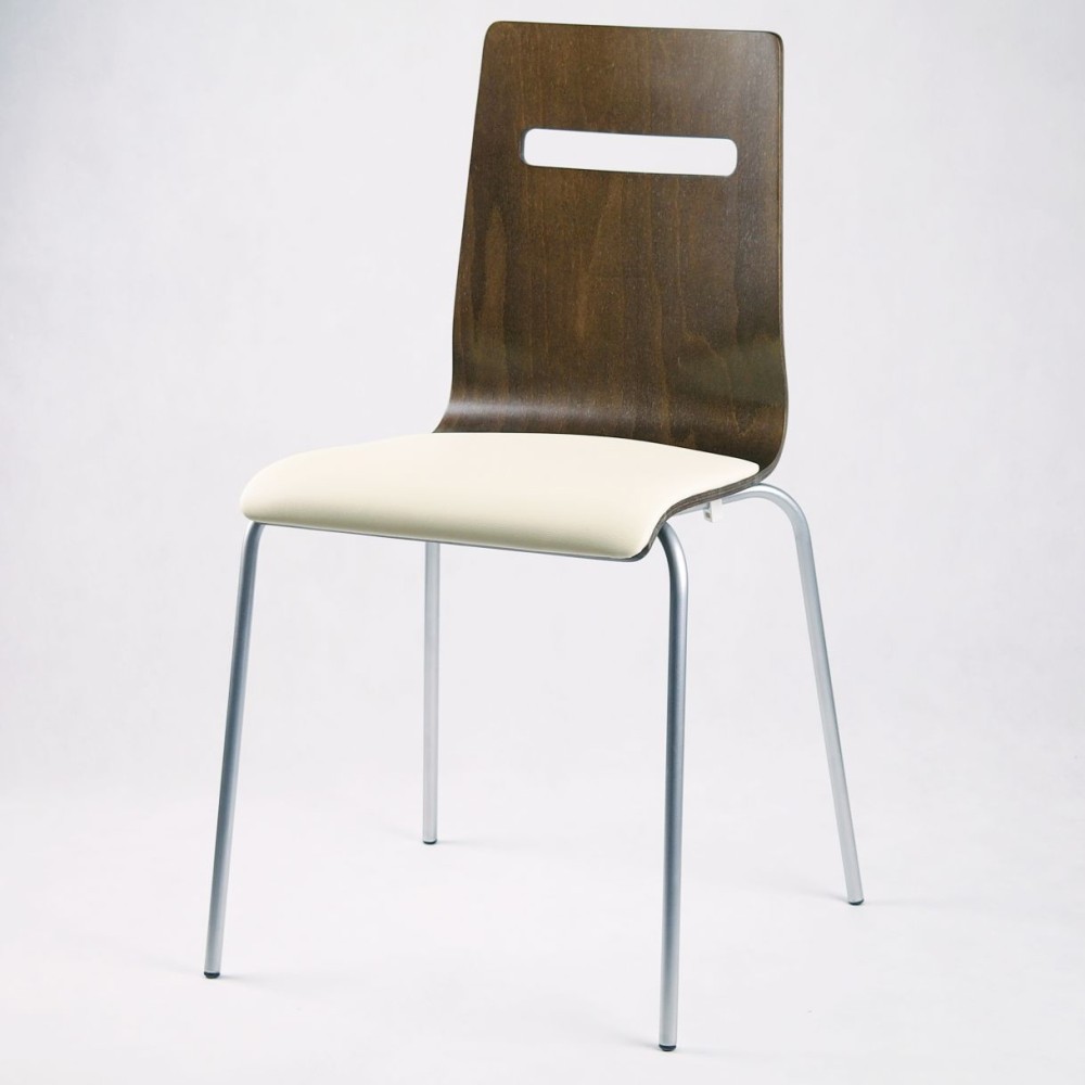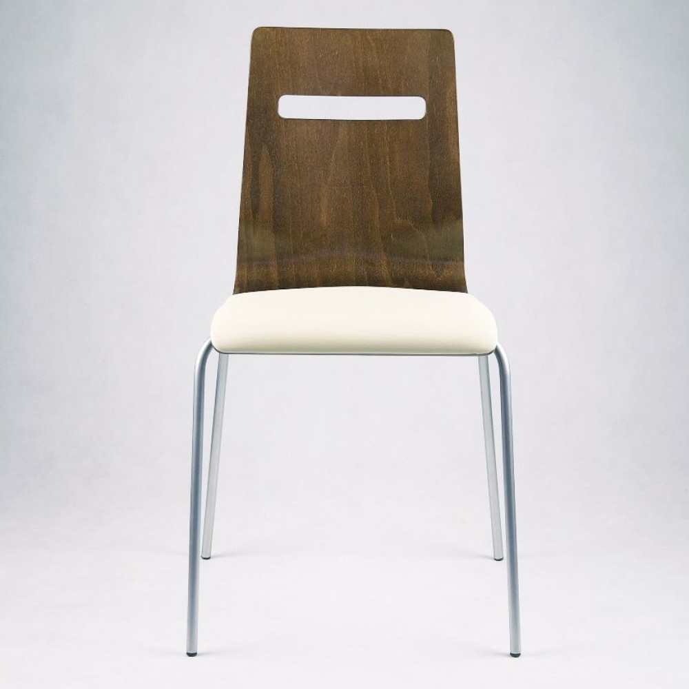 Стілець Миа відрізняється універсальним дизайном і порівняно невисокою ціною для стільця свого класу. Сидіння і спинка стільця з багатошарової фанери. Можлива додаткова комплектація незнімної подушкою зі шкірозамінника або тканини. В якості ніжок використовуються хромовані металеві трубки. Каркас стільця витримує навантаження в 120 кг. Підійде для кафе, офісу і вдома.