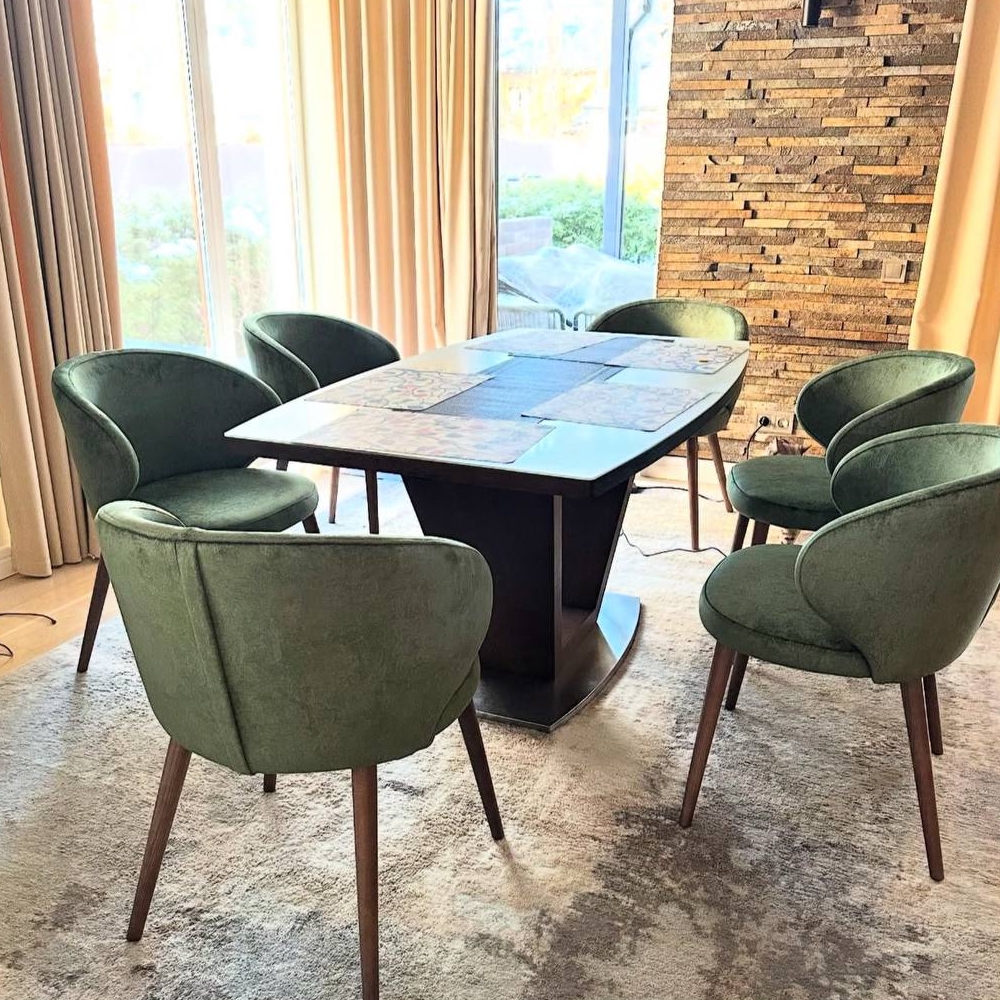 Матеріал і колір оббивки підбираються індивідуально, дозволяючи створити стілець, який ідеально впишеться у ваш інтер'єр.