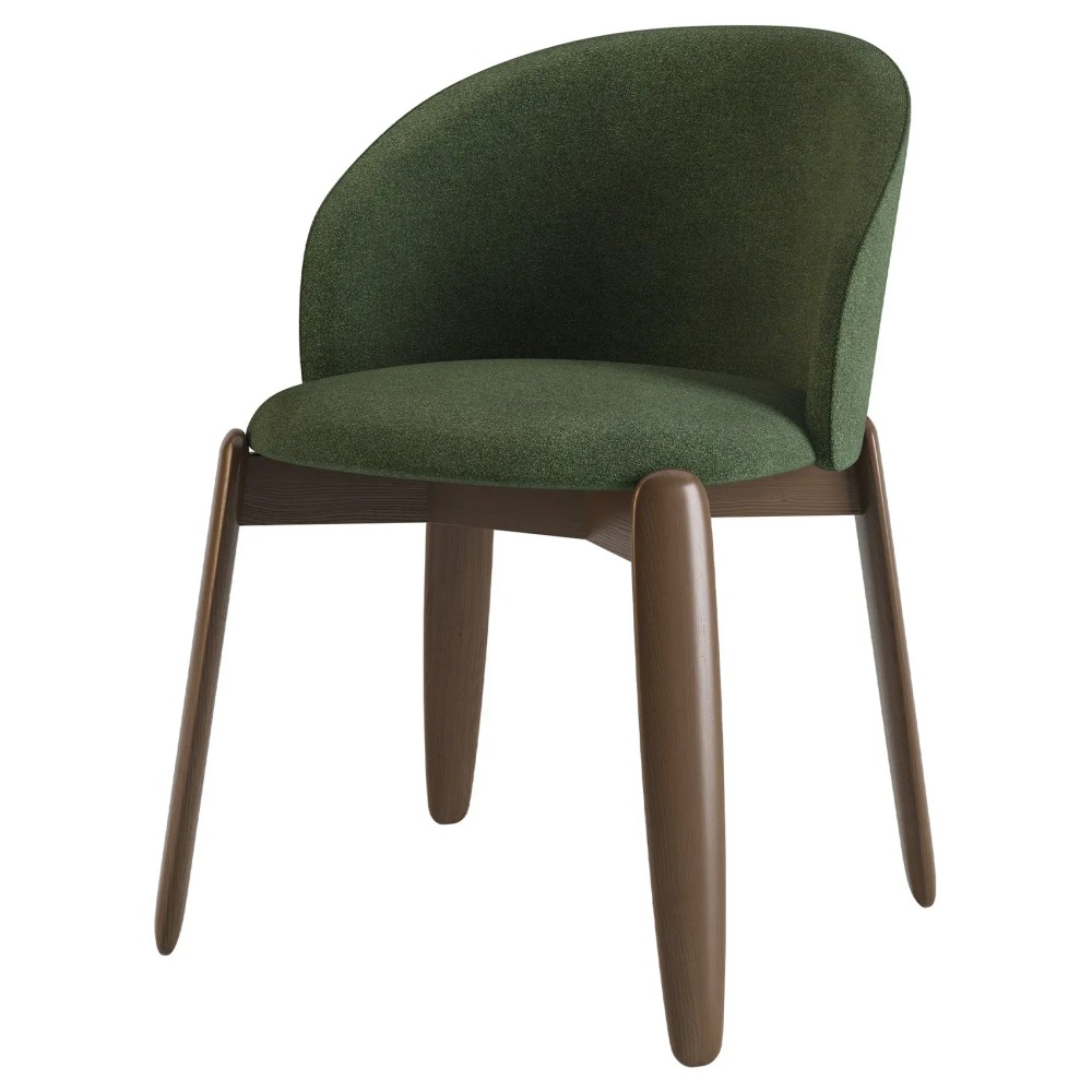 Стілець Rino темний горіх — це вдале поєднання естетики, зручності та натуральних матеріалів. Завдяки м’якому сидінню та округлій спинці він дарує відчуття затишного обіймання й забезпечує комфортну посадку як у щоденному користуванні, так і під час тривалих застіль.